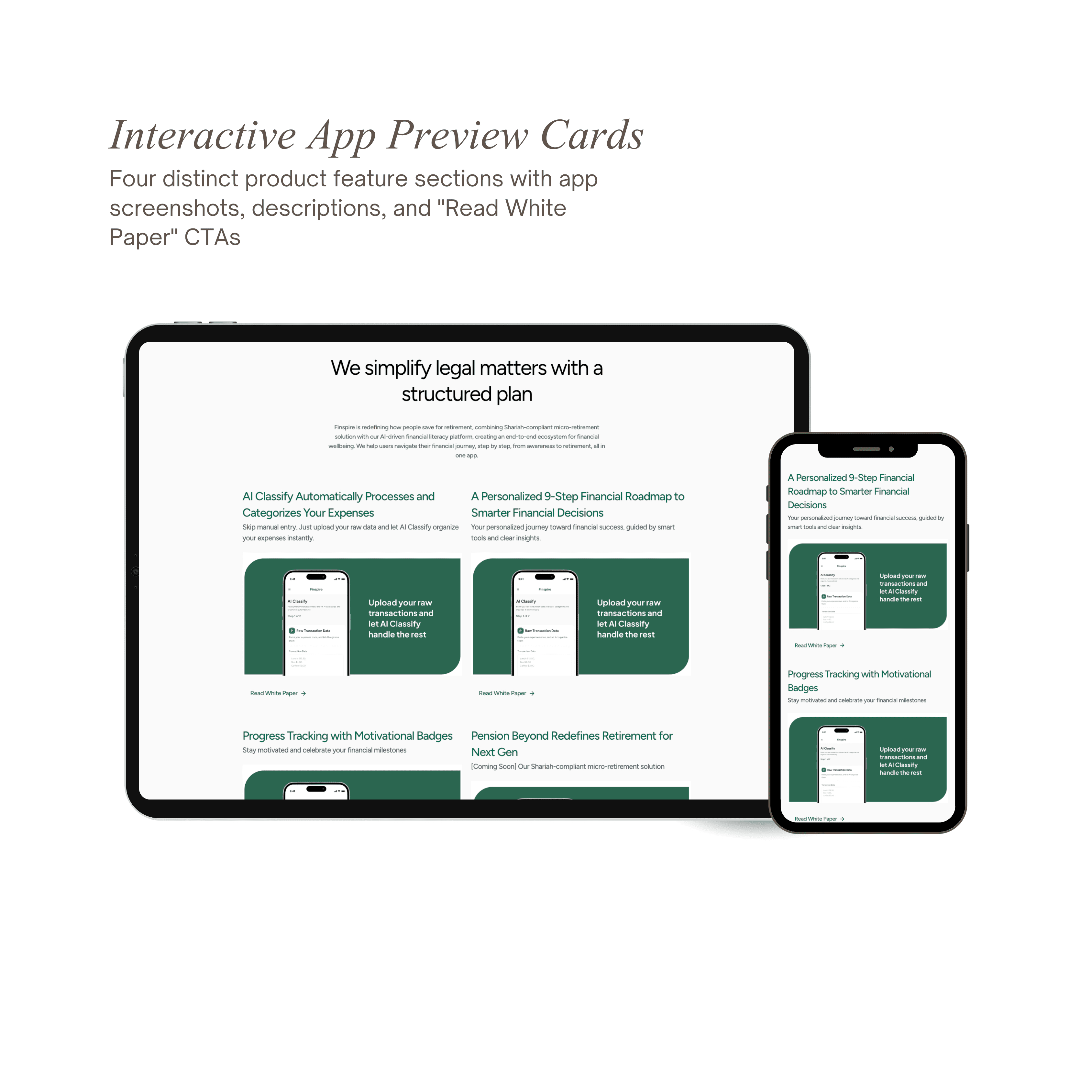 Finspire, Qatar's first AI-powered financial literacy platform, had a complete design but needed expert Framer development to bring it to life. The platform helps users track spending, manage budgets, and build retirement savings through intelligent automation and personalized financial roadmaps. I was brought on to develop the entire website in Framer, integrate promotional video content, and implement Arabic/English localization for the Qatari market, ensuring pixel-perfect execution and smooth performance across all devices.